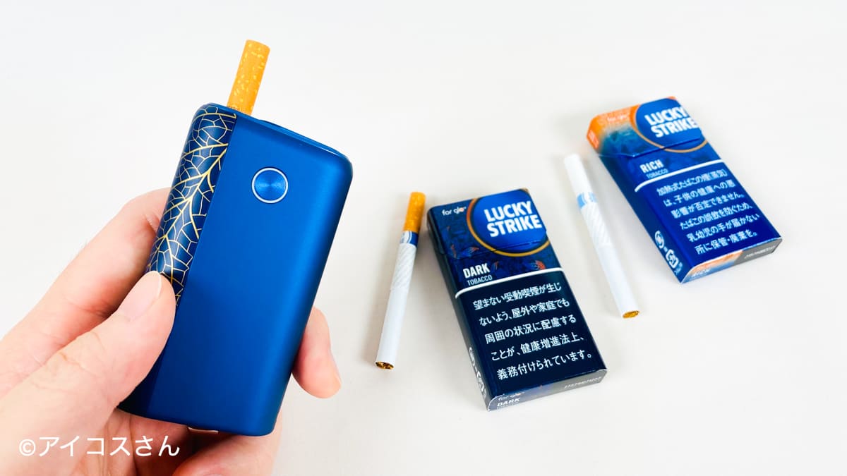 [say name="アイコスさん" img="https://iqossan.com/wp-content/uploads/senpai_01.png" from="right"]良い意味で加熱式たばこ感がありません。これまで紙巻きの「ラッキーストライク」や重めな紙巻きたばこを吸っていた方にはおすすめの銘柄といえます。満足度高い![/say]