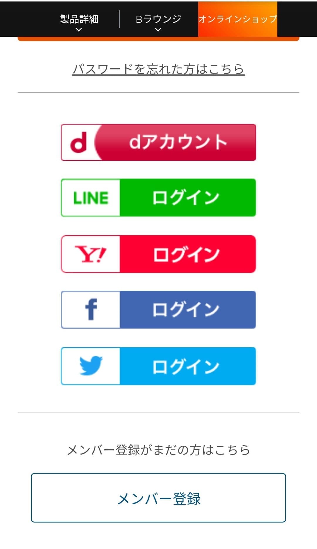 ログインページに移行したら下部にある「メンバー登録」を選択しましょう。