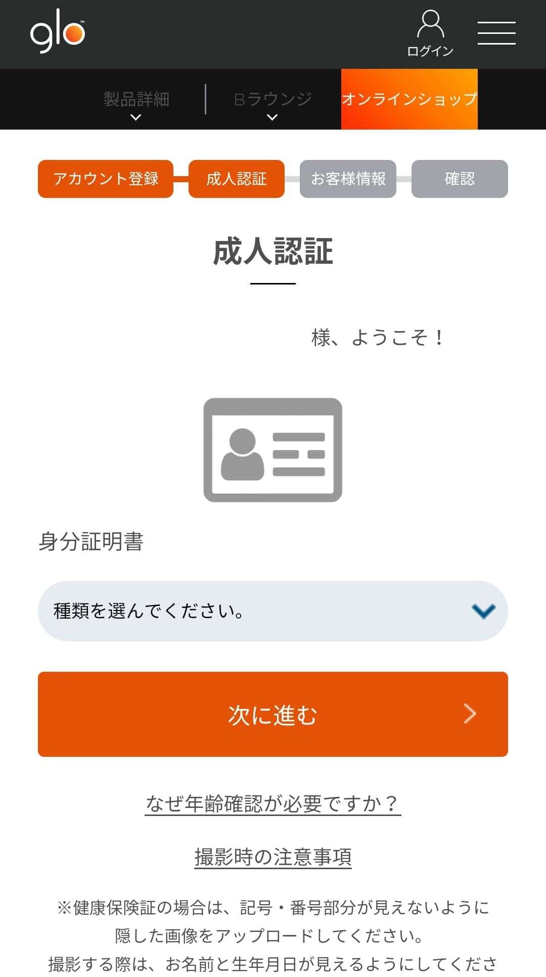 グローは喫煙具なので、会員登録時は成人であることを証明するため身分証の写真をアップロードしなくてはいけません。 [caption id="attachment_18905" align="aligncenter" width="350"]
