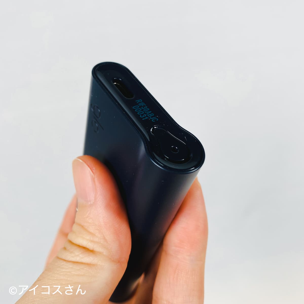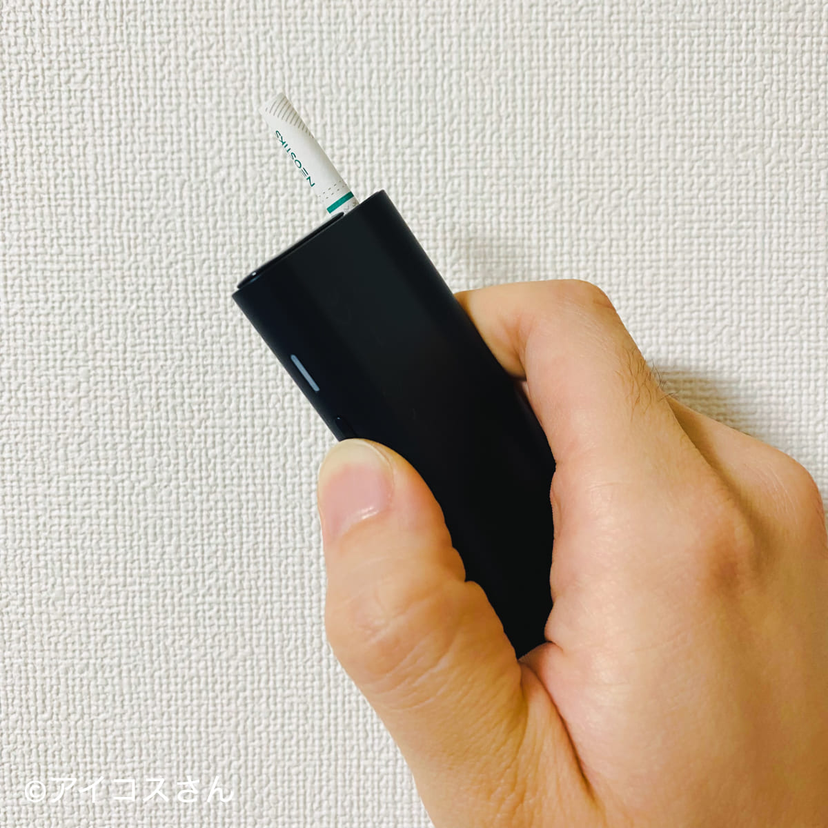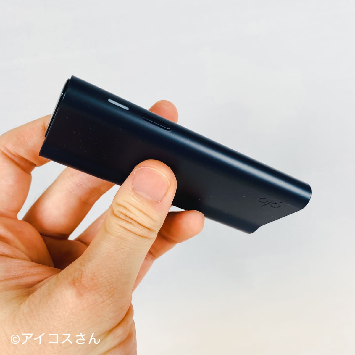薄いボディですが、たばこスティックを差し込む側は少し膨らんでおりそれがちょうど指の取っ掛かりになって持ちやすい。