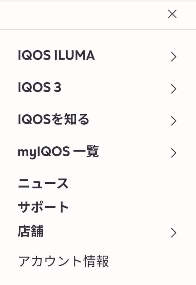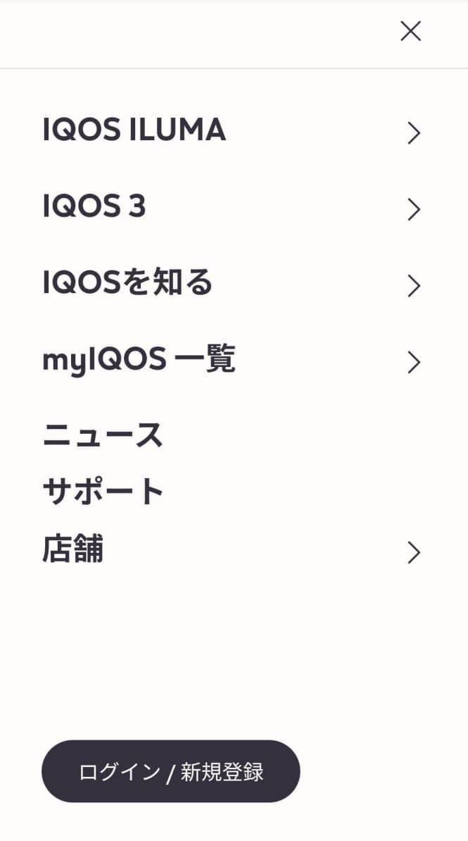 まず、アイコスホームページにアクセスしメニューを開きます。[/caption]