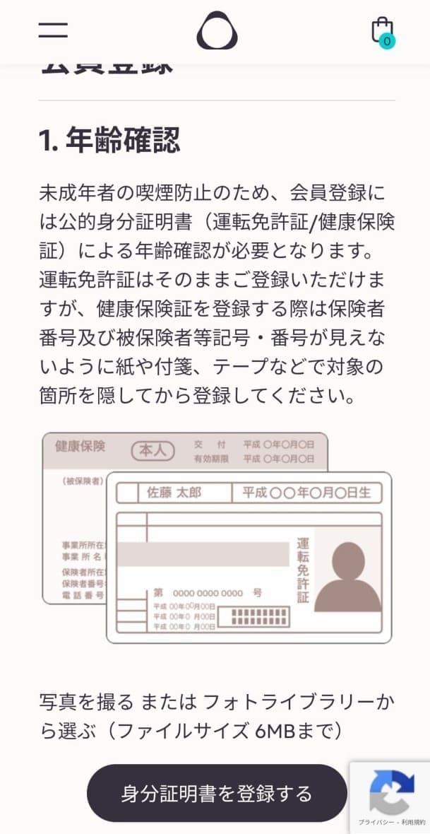 アイコスでは会員登録の際、年齢確認のために身分証の写真を送信する必要があります。
